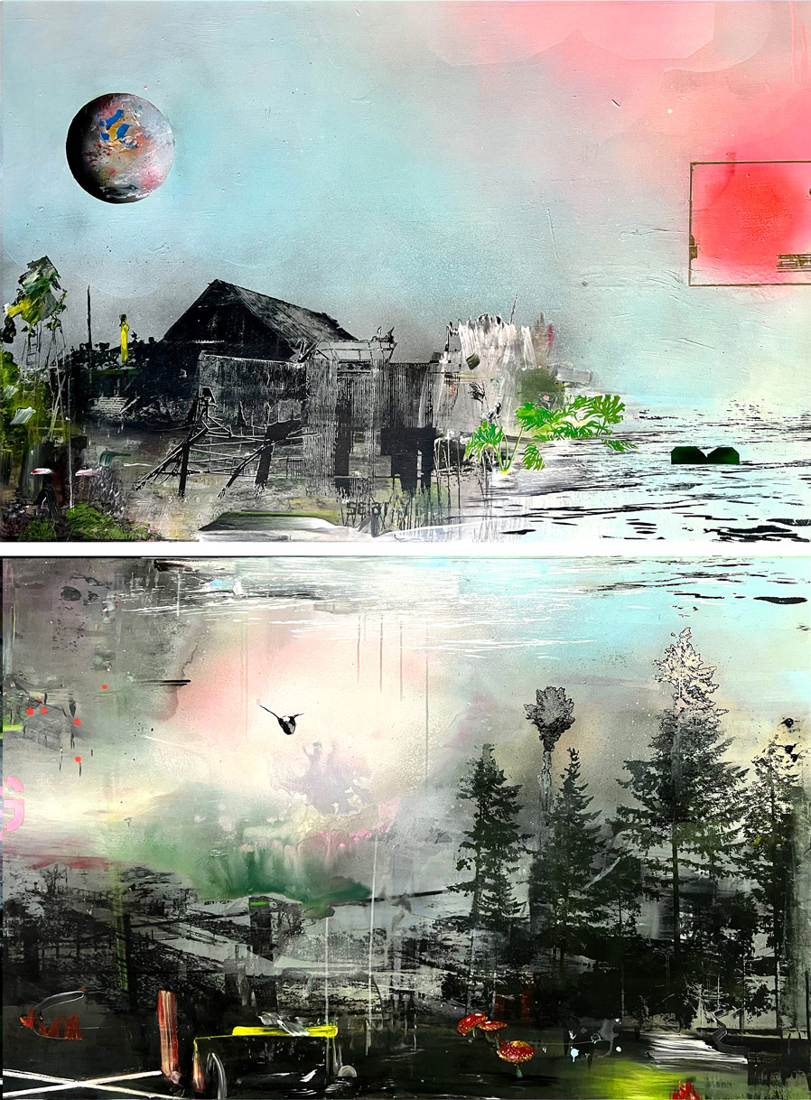 Nach Kyrill, 2025, Mischtechnik auf Lw., Dyptichon, 2x100x150cm