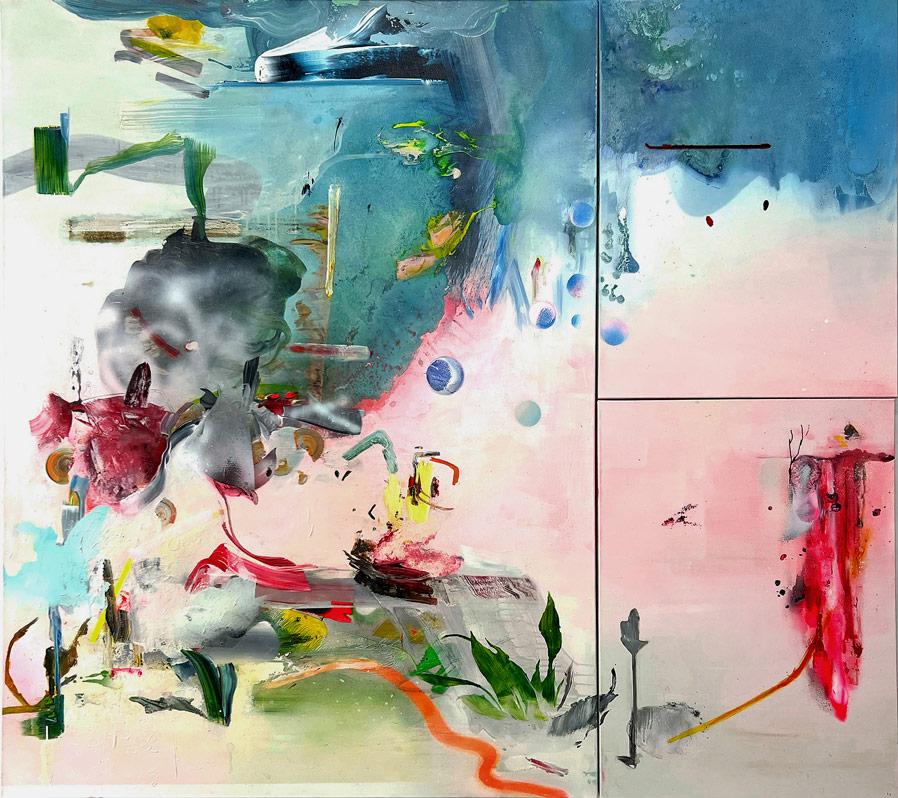 Kosmische Störung, 2025, Mischtechnik auf Lw., 160x120cm und 2x80x60cm